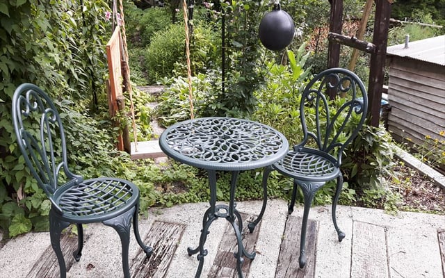 ウッドデッキ(BBQ専用のキッチン・テーブルとイス、蓋つきBBQグリルがあります。)